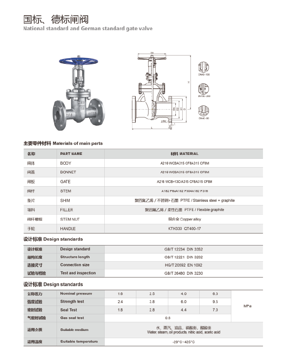 适用介质 水、蒸汽、油品、硝酸类、醋酸类