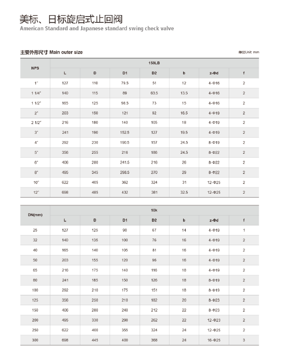 公称压力 150LB, 300LB, 10K, 20K